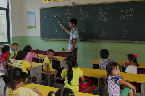 “来,同学们,黑板上画了几个苹果啊?跟着老师认数。”9月13日,记者驱车三个小时来到城市建设学院学子张欢、景嘉龙支教的南昌县塔城乡南洲小学时,张欢正在给该校学前班的孩子们上数学课。黑板上画着不同数量的苹果,下面写着相对于的数字,刚刚从南昌慈善义工协会发起的“南昌慈善义工大学生边远农村支教”活动中选拔分配到该小学义务支教的他有着自己的“教学模式”。