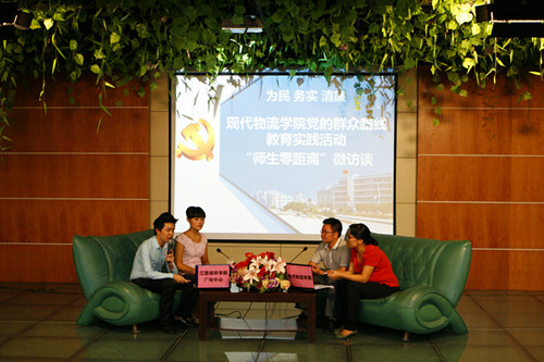 “我平时也利用微博与同学们在线交流,今天开展了这个校园“师生零距离”微访谈栏目很实际、很实用,线上网友提出的很多问题都是很多学生们普遍关注,微博上解答后,学生们通过自己的微博就可以看到,为自己解惑。既节省时间,此类方式同学们也喜闻乐见。”现代物流学院院长刘春斌对记者说:“现在全校上下都在大力开展党的群众路线教育实践活动,采纳同学们的建议就是活动的重要一项,此次活动利用新媒体,我们收集到了很多的问题与建议,我们将认真的总结、后期将一一解答,利用新媒体深入开展群众路线教育实践活动。”