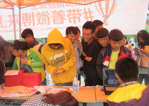 “我们还在活动现场设立帮帮团搭讪箱,学校各位老生在参与发布话题微博后,在一张便签纸上写下自己的微博名,投入搭讪箱中。新生在参与发布微博后,能再帮帮团箱中随机抽取一张签有师兄师姐的微博名便签纸,利用微博进行互粉。通过老生帮新生,一对一辅导的方式,帮助新生快速走出大学迷茫期,快速地适应大学生活,同时可以一同努力、一起成长。”该活动负责人张孝东向记者介绍了当天活动的特色。