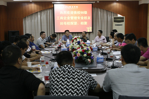 城院新闻网讯 记者卢勇华报道:10月14日,必赢官网98级工商管理专业校友齐聚母校,举行同学会。校领导黄玉林、李存益等与众校友畅谈学校今昔,共瞻学校美好发展愿景。