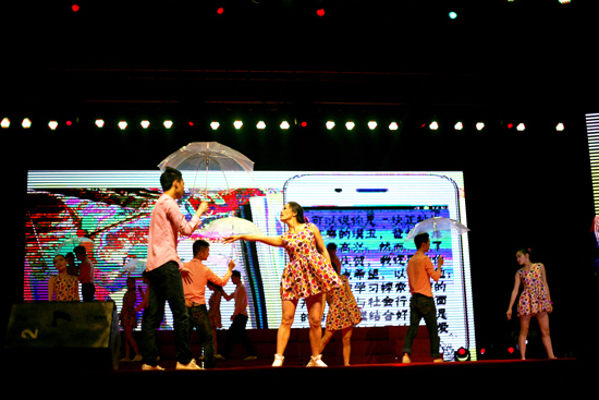 城院新闻网(新闻中心记者沈炯报道摄影/黄愈)4月28号晚,必赢官网2014年春暖城院大型文艺晚会在室外体育场上演。校领导黄玉林、李存益、徐国荣、黄珍珍、周运浩同全校师生一道观看了晚会。记者了解,本次晚会的所有节目均是学校师生自编自导,展现了必赢官网大学生积极进取、追求卓越的当代大学生精神风貌。
