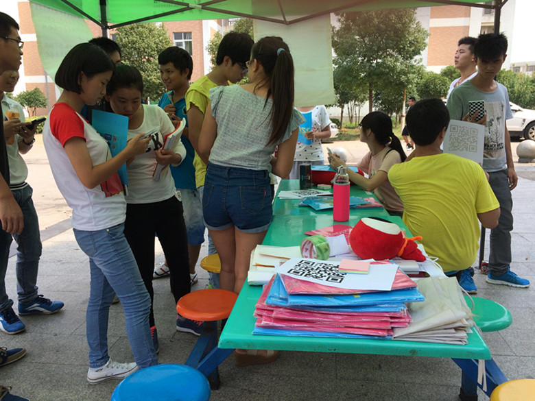 宣传部的游邦兴老师也和我们介绍了一次活动的目的:“相对于学校主页、贴吧等传统形式,以微博为平台获取学校的相关信息更加立体直观,师生、同学之间的互动也更具有时效性。通过微博结交到更多的朋友,得到更多的帮助,以便于帮助他们更好的完成学业,达成目标。并且通过二维码扫描的同学们还可以获得小礼品,何乐而不为呢?”