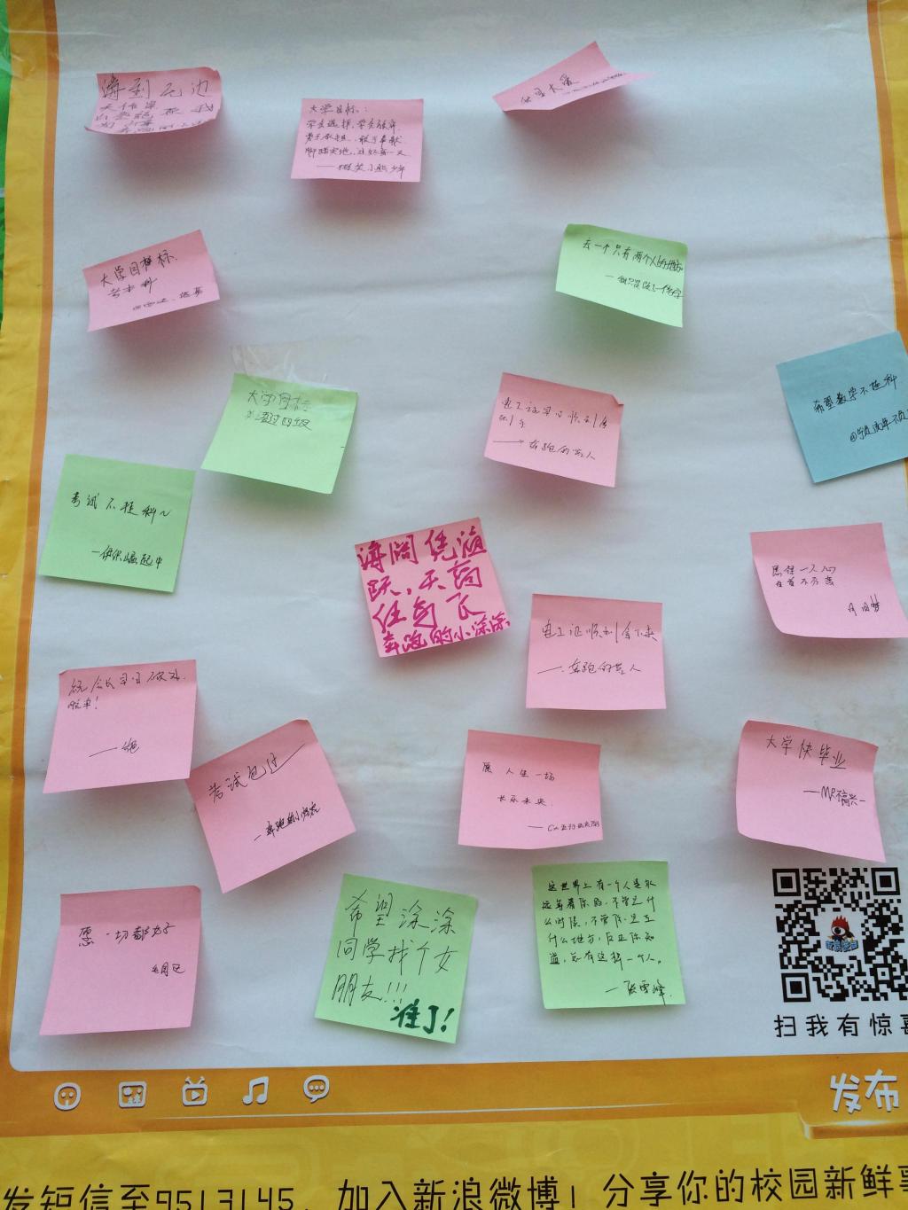 本次活动的负责人施勤同学告诉我们:“今天的活动很成功,很多学生参与到我们活动中来。我们在活动中指引同学们扫二维码并和学校的师哥师姐互粉,帮助他们走出大学迷茫期,快速适应校园生活。我们在活动现场还设立了梦想墙,将新生们大学的梦想展现出来。”