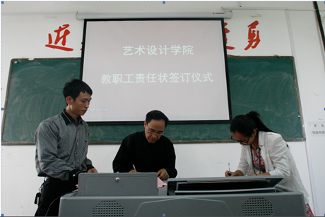 本网讯(艺术设计学院通讯员:谌晶)10月14日下午,艺术设计学院全体教职工在多媒体教室325举办了教职工和院长责任状签订大会,学校党委副书记、纪委书记、副校长李存益教授亲临指导。