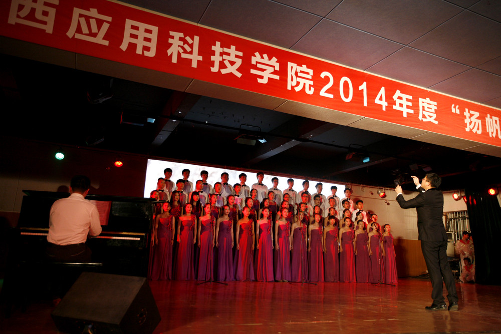 由青年教师邹长江,贺必成等演唱的《西部放歌》,他们用豪情壮志演绎了应科人的情怀。