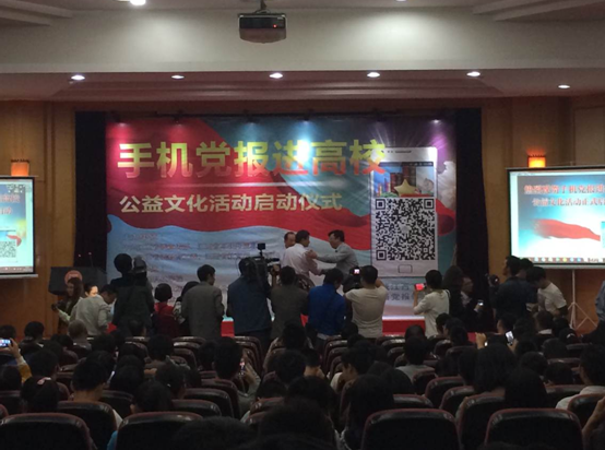 仪式上,王金华在启动仪式上致辞时强调,“手机党报进高校”公益文化活动的启动,将为我省高校建立一个新的互联网舆论阵地,走出一条校媒合作的新路。接着,《江西手机报》总编辑黄新阳向在场所有人员介绍了《江西手机报》的有关情况。他表示,手机作为新媒体将以新形势与优势来壮大高校学生媒体的宣传队伍,为高校广大师生提供更加优质的服务。省网信办专职副主任李绪先在仪式上强调:要将手机党报进高校与培育和践行社会主义核心价值观结合起来,不断增强深化改革的向心力,以大学生喜爱的方式传播党的声音,传递社会正能量。