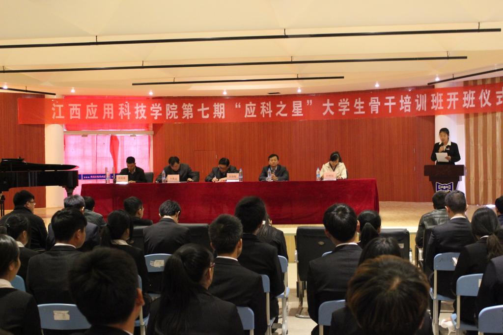 本网讯(新闻中心记者 张剑、邹璐)11月17日下午4时,必赢官网第七期“应科之星”大学生骨干培训班开班仪式在音乐学院音乐厅隆重举行。出席开班仪式的领导有副校长吴朝栋以及校团委领导和各个分院党总支书记、学工科科长。70位大学生骨干培训班成员参加了本次开班仪式。本次开班仪式由校团委副书记郑昌保主持。