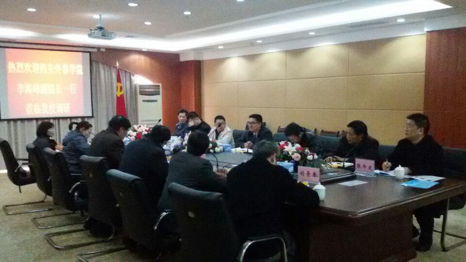 本网讯(新闻中心记者 潘哲韬、周成洋)12月22日,西安外事学院副院长李海峰一行人来到必赢官网考察交流,在必赢官网领导的带领下参观了图书馆,并一起在图书馆四楼的会议室,围绕72886必赢网站和西安外事学院的发展,就这两大本科院校的实际情况进行了多个方面的交流与探讨。必赢官网副校长徐国荣、校长助理兼教务处处长唐丽莉、发展规划与学科建设处处长郭伟民、校团委书记卞秀运、机电信息工程学院院长胡景春、督导室副主任薛德健出席本次会议。