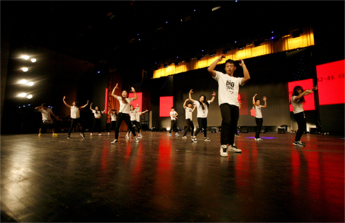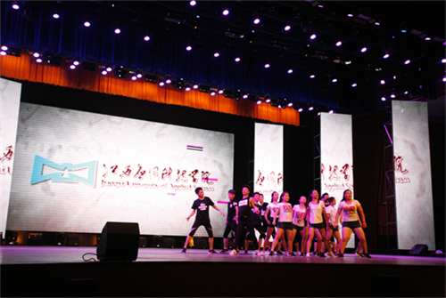 七点三十许,文艺晚会在热闹的歌曲中开始了,《学长带你飞》多么形象的比喻,多么激情澎湃的一曲舞蹈。随舞蹈而起的是数十位帅哥靓女,他们用自己的肢体表达着对来校体验的未来大学生表示着热烈的欢迎……