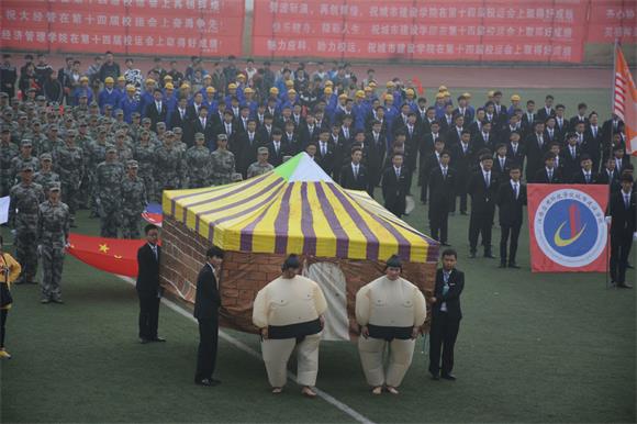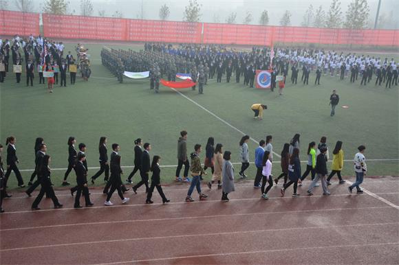 方阵表演结束后,胡振鹏在开幕式上发表讲话,他表示,体育教育是学校素质教育的重要组成部分,也是学校精神文明建设和校园文化建设的重要组成部分,希望全体运动员要奋勇争先、顽强拼搏,希望全体裁判员严守规程,认真履行权利义务,希望全体人员忠于职守、热情服务。最后,他预祝全体运动员取得优异成绩,并预祝运动会取得圆满成功。