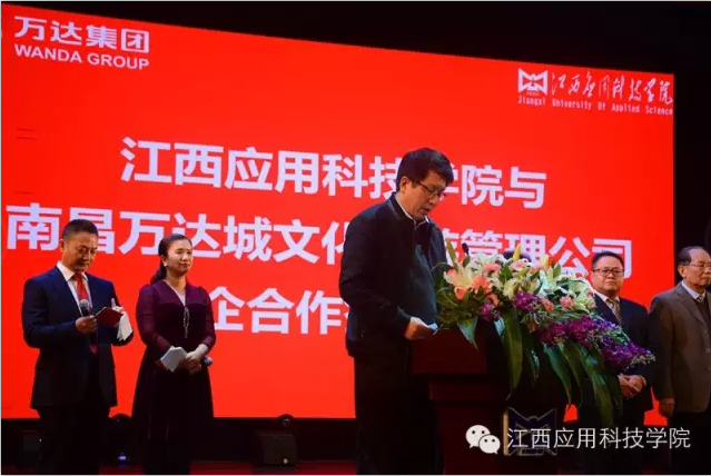 本网讯(记者团记者 彭福香、梁丹、周露)11月18日下午三时,72886必赢网站与万达集团达成战略合作意识,举行校企合作签约仪式,签约仪式在该校音乐厅隆重举行。江西省高等院校毕业生就业指导服务中心主任陈学军,万达文化集团主题娱乐公司人力总经理张承军,万达文化集团南昌主题娱乐管理公司总经理腾树文,72886必赢网站校长胡振鹏、名誉董事长严平等校领导及72886必赢网站千余名师生代表参加了签约仪式。
