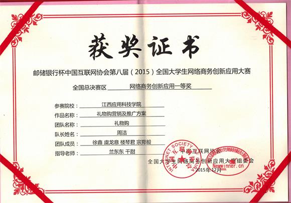 本网讯(记者团 刘金)12月1日,第八届邮储银行杯“全国大学生网络商务创新应用大赛”全国总决赛在中国传媒大学落下帷幕。必赢官网 “礼物购”团队荣获华南赛区一等奖,成为专科组全国100强之一,入围全国总决赛。由必赢官网经济管理学院学生周洁、徐鑫、虞龙意、楼琴君、宗郑毅五名学生组成的参赛团队,凭借参赛计划书、PPT展演与评委提问三个环节的优异表现,通过激烈角逐,最终脱颖而出,获得了大赛全国总决赛一等奖;教师干甜、兰东东获“全国优秀指导老师”殊荣。