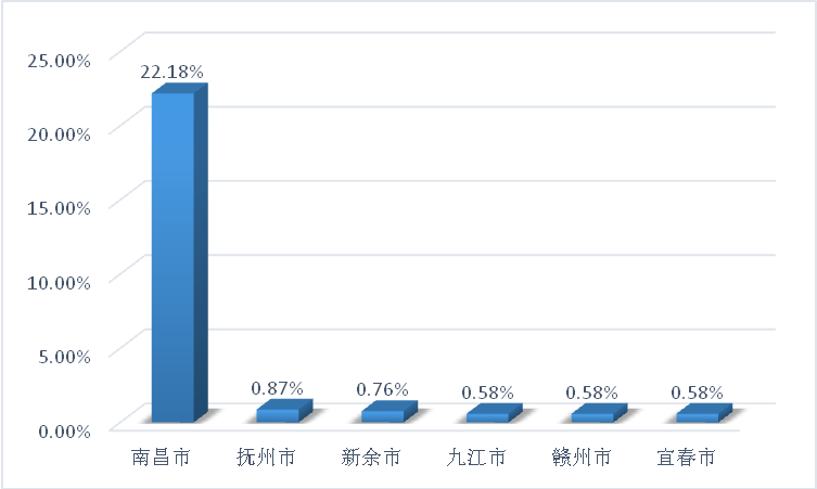 2015届毕业生目前已落实的工作地域在外省的相对多于江西本省,但在本省实现就业的毕业生仍占到26.02%。其他在浙江省就业的人数最多,有348人,占毕业生就业总人数的20.26%;其次为广东省,有149人,占总人数的8.67%;再次是安徽省,120人,占6.98%。在省内就业人数排名前五的地区分别是南昌市、抚州市、新余市、九江市、赣州市和宜春市,其中南昌市就业人数占到毕业生就业总人数的22.18%。