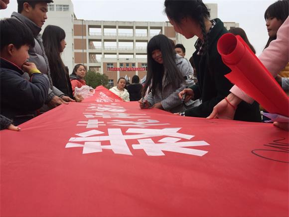 在学校小广场上,志愿者们拉起印有“栽花护树勤插柳,雷锋精神心中有”的横幅,举行全校师生签名的活动。在学校周围,志愿者们在小纸片上写下自己内心呼吁大家爱护花草树木的话语,希望用这一行动呼吁全校师生和周边的村民一起爱护树木、保护树木,共创一个美好的生活环境。