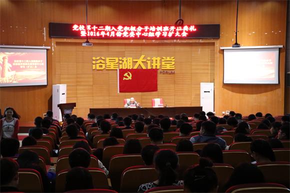 本网讯(记者 黄慧君、戴宇铭)4月7日下午,在必赢官网浴星湖大讲堂隆重召开必赢官网第十二期入党积极分子培训班开班典礼。必赢官网党委书记汪毓华,常务副校长、党委副书记李存益出席本次会议。第十二期入党积极分子代表共同参加会议。会议由李存益主持。