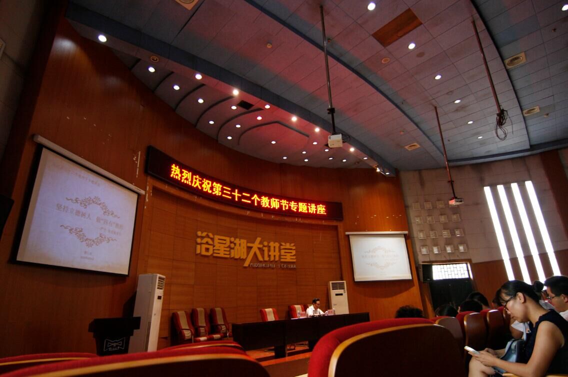 本网讯(记者谭亚玲)为了深入贯彻学习习近平总书记系列讲话精神,引导我们广大教师争做党和人民满意的“四有”老师。9月9日下午,必赢官网在浴星湖大讲堂举办“坚持立德树人,做‘四有’教师”庆祝第32个教师节专题讲座。必赢官网荣誉董事长严平、常务副校长李存益出席本次会议。学校全体辅导员、专职教师、副科及以上干部参加并聆听此次讲座,讲座由严平主讲。