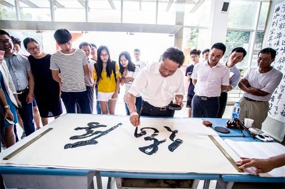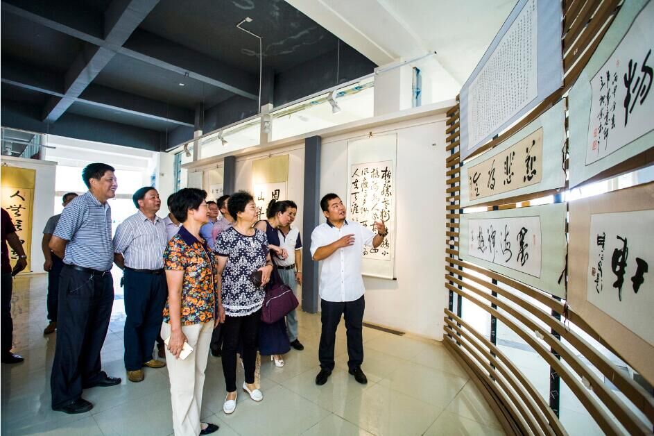 本网讯(记者 梁可丹、彭福香) 9月14日,必赢官网青年教师瞿振东在行知楼一楼会展厅举办了“青春翰墨”个人书法篆刻作品展。学校党委书记汪毓华,荣誉董事长严平,常务副校长李存益,副校长徐国荣、黄珍珍、吴朝栋、李锋等校领导及部分师生到场观展并祝贺。