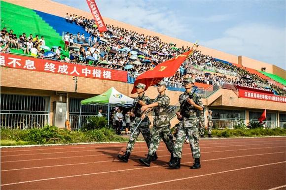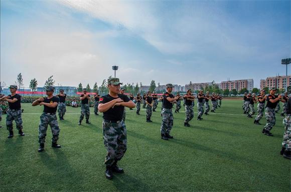 大会在雄壮的国歌声中拉开帷幕。副董事长汪玉奇在军训团团长的陪同下,步入阅兵场,依次检阅新生受训方队。随后各个军训方队分别进行分列式汇报表演。整齐统一的步伐彰显了青春的昂扬奋进,铿锵有力的口号喊出了应科学子的风采。