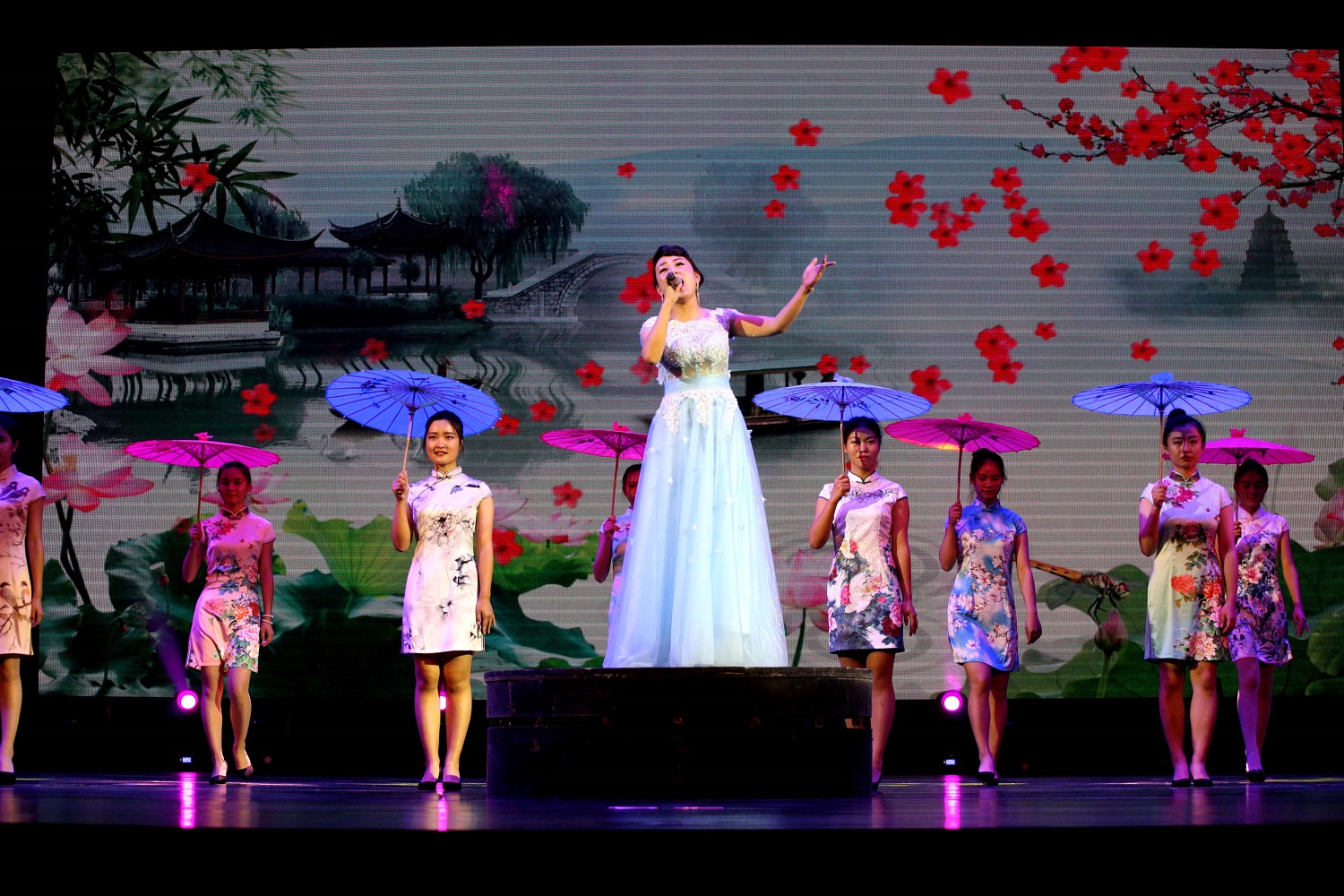 晚会在群舞《花开盛世》中拉开序幕。