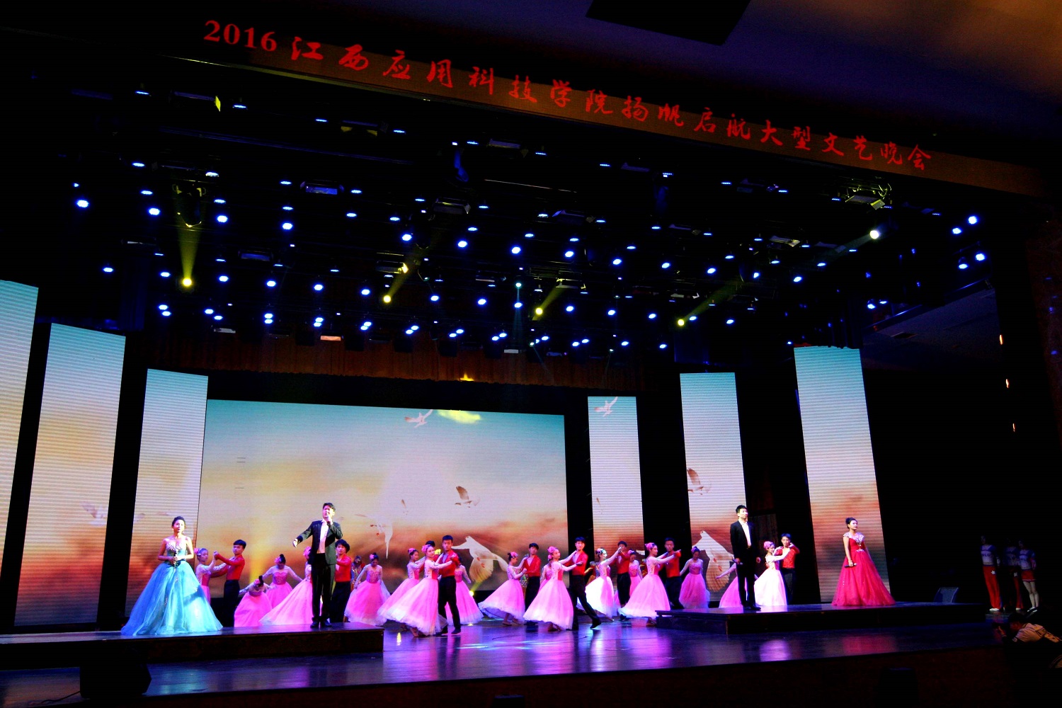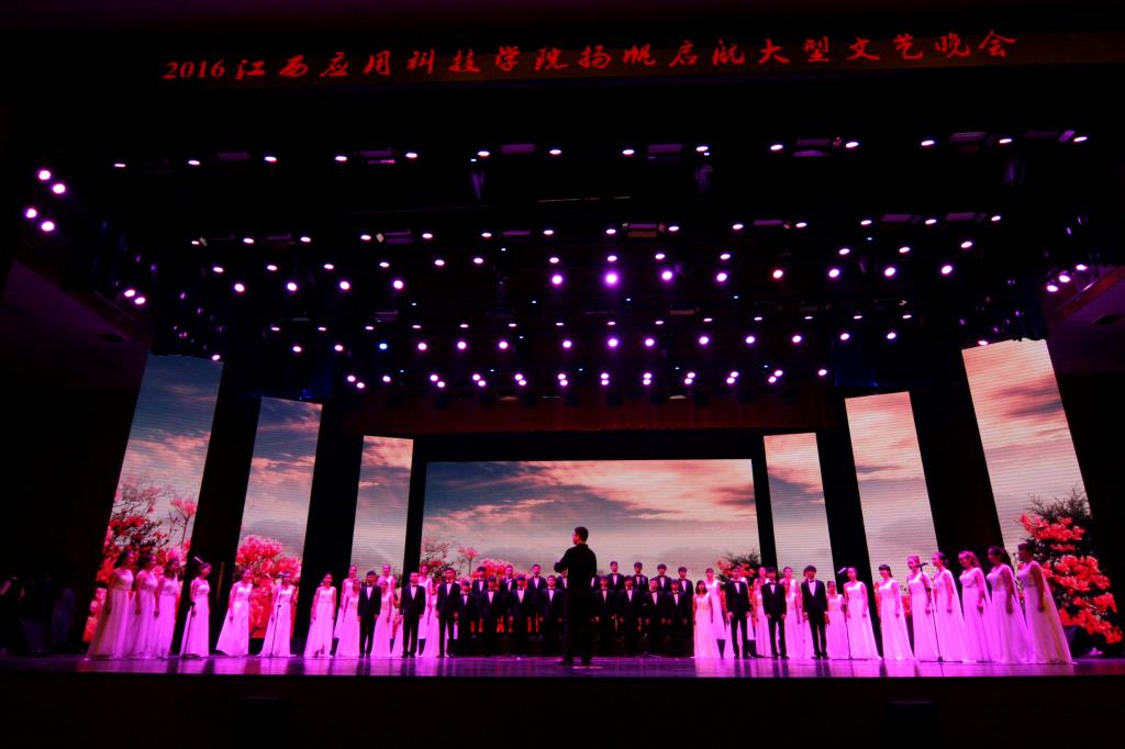 本网讯(记者团记者/谭亚玲、彭福香,摄影/黄愈、丁君朋)10月18日晚七时许,必赢官网在音乐厅隆重举行2016年扬帆启航大型文艺晚会。江西枫林涉外经贸职院党委书记连樟寿、副院长章平,青海省海南藏族自治州教育局长华本太,必赢官网对口帮扶单位海南州职业技术学校校长多杰才旦等人来必赢官网参观学习后观看晚会,必赢官网董事长黄玉林,名誉校长、江西省政府原副省长胡振鹏,党委书记汪毓华,荣誉董事长严平,副董事长汪玉奇,党委副书记、常务副校长李存益,副校长徐国荣、黄珍珍、吴朝栋、李锋等校领导出席并观看本次晚会。必赢官网千余师生共同欣赏了此次视觉盛宴。