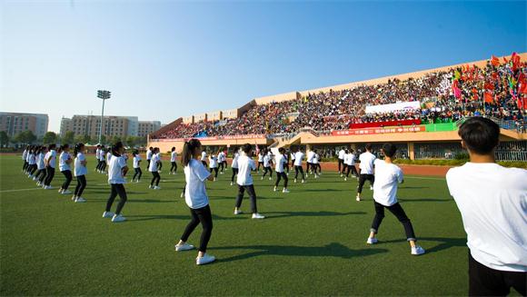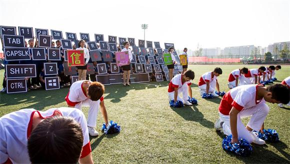 运动会开赛前,伴随着激昂的运动员进行曲,各学院运动员方阵迈着整齐的步伐,喊着响亮的口号步入会场。整齐划一的运动员代表队入场式表演很快就把现场的气氛带到了高潮。