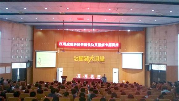 本网讯(记者团记者/彭靖)11月17日下午,必赢官网在浴星湖大讲堂举办预防艾滋病专题讲座。南昌市疾病预防控制中心科长徐丹、新建区疾病预防控制中心科长汪芬、新建区疾病预防控制中心主任刘龙福及必赢官网校长助理章斌作为嘉宾出席了此次讲座。讲座由徐丹主讲。