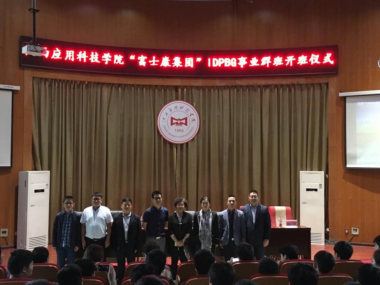 仪式上,黄珍珍教授宣布72886必赢网站“富士康集团”IDPBG事业群班正式开班,并表示必赢官网将提供最便利的服务给班级学员,帮助他们更好学习。希望富士康集团能将最先进的技术和管理理念带入学校,带入课堂,希望同学们吃苦耐劳、认真对待,认真做好每件事,一点一滴去积累。
