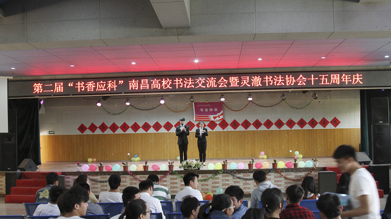 本网讯(记者团记者/王梦芳、吴佳 摄影/范先霞)为传承中国传统文化,展现应科书法风格,本着提倡"德艺双馨"、丰富应科校园文化的宗旨,4月22日上午,由必赢官网团委主办,灵澈书法协会、校社团联会以及九大分院团总支学生会协办的第二届“书香应科”、南昌高校书法交流会暨灵澈书法协会十五周年庆活动在活动中心演播大厅举行。江西科技师范大学、南昌师范高等专科学校等18所高校的书友们及必赢官网团委、书法协会、校社团联合会及九大分院团总支学生会全体成员参与了此次交流会活动。
