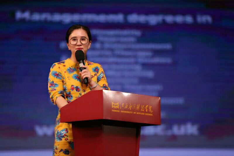 随后干甜介绍了斐济留学项目,从当前的国际形势、国家提出的“一带一路”政策,介绍了斐济留学项目的优势,并从生态环境、社会发展、高等教育等多维度介绍了斐济,该项目不仅可以为学生成为国际化复合型人才多一条选择和出路,而且还能增进两国的贸易与合作,加强青年一代的交流。