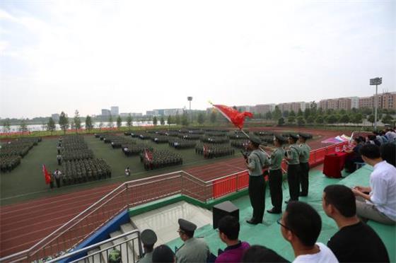 大会上,李存益为军训团授旗后,教官队代表齐威代表全体教官宣誓,他表示,在此次军训中,以良好的教官形象,过硬的军事素质完成好此次军训任务;认真履行教官职责,发扬不怕苦不怕累的精神,以身作则,给同学们做出榜样;在训练上以标准的动作,合理的方法,科学施教,严格施教。
