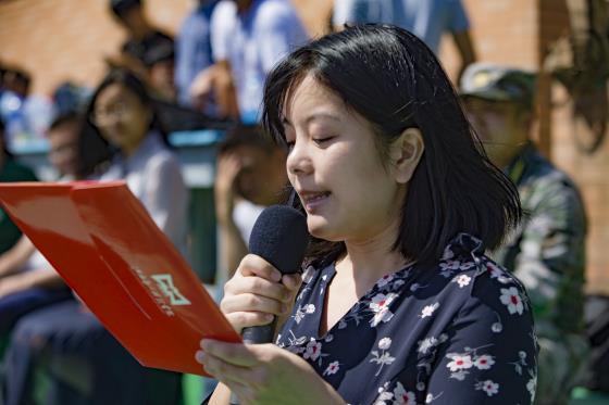 老生代表2014级国际商务本科一班罗雪莲发言。她说,作为学姐,我仍然有两句话想和大家分享。一是要相信自己,相信学校,要积极向上,勇于拼搏;二是要虚心学习,不断进步,超越自我,青春无悔。