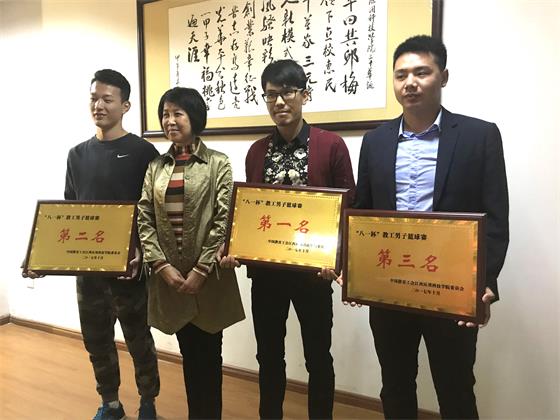 会上,王玉芝为此次在“八一杯”教工男子篮球赛获奖的获奖单位颁奖。