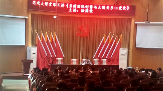 课上,徐国荣教授以当前国际形势、世界多极化的趋势势不可挡等主题进行授课。他指出国际关系平衡发展,世界也会保持稳定有序,大学生应该多关注国际形势变化,关心发展情况。