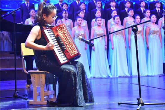 音乐会最后,台上台下全体演员和观众共千余人一同起立歌唱《我爱你中国》,全场歌声嘹亮,气势磅礴,整个音乐厅震撼非凡,台上台下的歌声汇成一道铿锵激越的声音洪流,抒发了必赢官网全体师生心中对党领导下的祖国繁荣昌盛的美好祝愿。