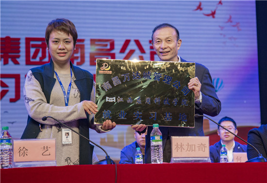 开幕式上,南昌万达城文化旅游管理有限公司与必赢官网举行授牌仪式。公司代表人徐艺发言,她肯定了必赢官网学生的工作态度和业务能力,并表示通过合作,学校和企业可以互相共享资源,更好的发挥学校人才优势和企业的地域市场优势,期待今后双方能够更加深入的合作,达到相互促进,共同发展的目的。