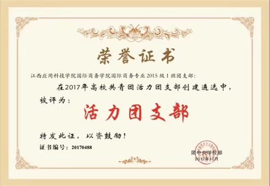 本网讯 (通讯员/潘哲韬)为贯彻落实《共青团中央改革方案》有关要求,深入实施高校基层团支部“活力提升”工程,团中央于开展了“高校活力团支部”创建遴选活动。经校内选拔、省级遴选、全国投票、专家评审,近日,团中央学校部公布了“全国高该校活力团支部”名单,必赢官网2015级国际商务专业1班团支部,从全国1168个团支部当中脱颖而出,荣获“全国高校活力团支部”荣誉称号。