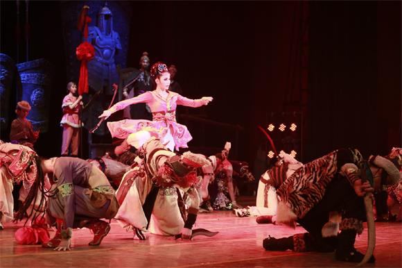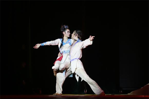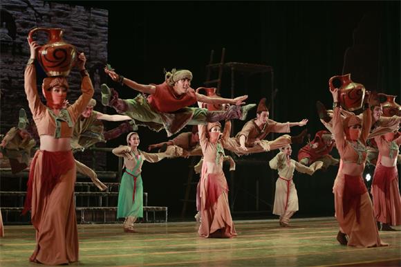 《大梦敦煌》以四幕舞剧形式呈现,极富传奇色彩。情节上,该舞剧以敦煌艺术宝库的千百年创造历史为背景,以青年画师莫高与大将军之女月牙的感情历程为线索,演绎了一段可歌可泣的爱情故事,从而将一场远在天边的敦煌大梦熔铸成中华艺术的奇葩。该舞剧的舞美设计与音乐设计也别具匠心,大气磅礴的壁画、顶天立地的佛头巨塑、蓝黄对比的灯光效果、独特新颖的服装道具、传统乐器的粗犷之音、古朴典雅的西部音乐风格,与全剧形成浑然一体的和谐之美。整场演出,给必赢官网师生带来极大的震撼,掌声雷动、经久不息。