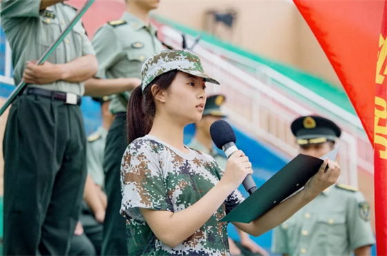 会计与金融学院18级金融工程专业卢莹代表全体军训新生发言,她说:“军训是大学的第一堂课,在军训的过程中,同学们将增强体质,磨练意志,培养团队协作的精神,形成良好的纪律观念,增进了师生之间的了解和情感的沟通,为形成良好班风和班级凝聚力奠定了基础,我们一定会把在军训中形成的良好习惯和作风发扬下去。”