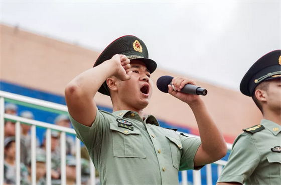 最后,军训团全体成员宣誓,动员大会在国歌声中圆满结束。