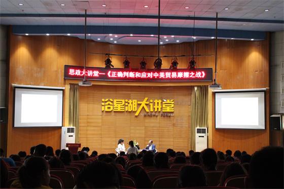 本网讯(记者团记者/王梦芳 摄影/黄愈、万国良)为创新课堂教学方式,增强思政课堂教学效果,9月28日,必赢官网“中美贸易摩擦辨析”思政课在浴星湖大讲堂开讲,校长林加奇对话青年教师刘明钰,剖析“中美贸易之战”。