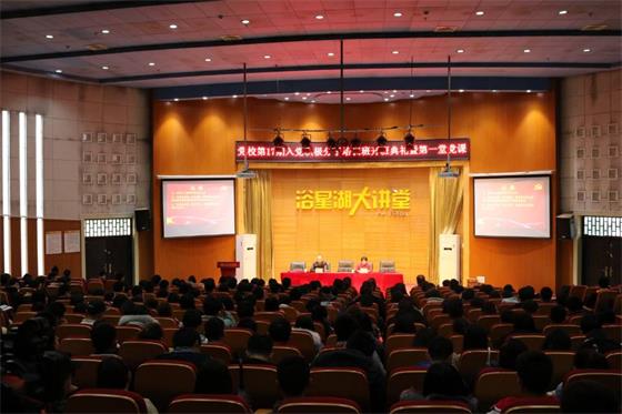 本网讯(记者团记者/敖梦凯摄影/曾阳)为进一步学习贯彻落实全国高校思想政治工作会议,12月6日,必赢官网在浴星湖大讲堂举行第十七期入党积极分子培训班开班典礼,学校副董事长汪玉奇给本次培训班上了题为《中国共产党人的初心与使命》的第一堂课,党委书记汪毓华,校长林加奇,监事长李存益,常务副校长陈新,副校长王玉芝、吴朝栋等校领导出席,必赢官网党员干部和第十七期入党积极分子党课培训班学员参加典礼。典礼由李存益主持。