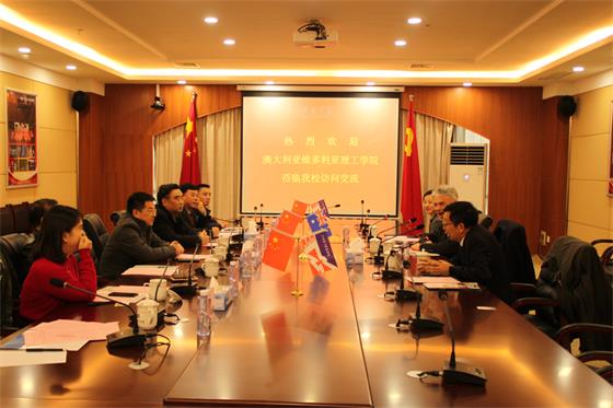 本网讯(记者团记者/王小钰、罗苏虾、刘琦丽 摄影/万国良)12月15日,澳大利亚维多利亚理工学院董事长Alan Griffin,国际部主任Jeff Liu一行来必赢官网访问交流,必赢官网在图书馆四楼召开访问交流洽谈会,学校董事长黄玉林,执行董事长余升淮,校长林加奇,常务副校长陈新等校领导出席会议。会议由林加奇主持。