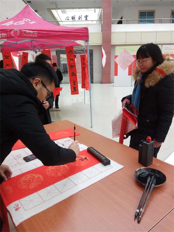 活动中,图书馆王涛老师说道,“临近过年,此次活动不但可以弘扬中华民族传统文化,还可以营造一种浓厚的春节氛围,书法作为一种艺术,通过活动,促进了师生之间的交流,也让他们进一步了解了中华民族传统优秀文化。”