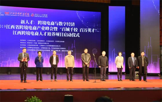 何建洋在峰会开幕式上发表讲话。他说,大力发展数字经济,关键在人才,根本在教育。加强政府、高校和企业的合作,培养大批高枝能人才和高素质劳动者,是江西推进教育供给侧结构性改革的重要任务,也是江西高校对经济发展提供支撑的题中应有之义。“2019江西省跨境电商产业峰会暨‘百城千校 百万英才’江西跨境电商人才培养项目启动仪式”就是高校联手行业、企业,贯彻落实中央重大决策部署的具体行动,策应省委省政府大力发展数字经济的具体表现。我们相信,在省委省政府的坚强领导下,在社会各界共同支持帮助下,通过加强校企合作,深化产教融合,大力推进电商人才培养,江西的数字经济和跨境电商产业一定会得到更大、更新的发展。