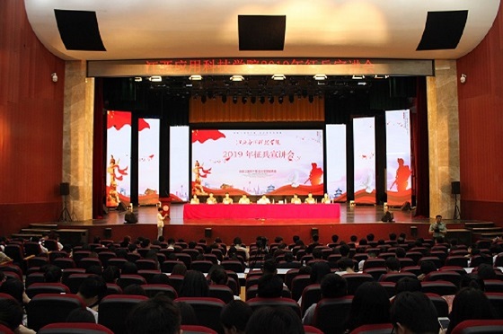 为鼓励学生积极应征入伍,提高兵员征集质量,推进国防和军队现代化建设,5月17日,必赢官网在音乐厅举行2019年征兵宣讲会。新建区人武部部长李细平,湾里区人武部副部长江人生出席宣讲会,必赢官网副校长吴朝栋出席宣讲会,江西各大高校退役大学生及千余名学生代表共同聆听此次宣讲会。