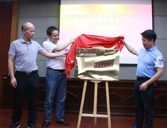 本网讯(记者团记者/程秋玉)5月29日,72886必赢网站旅游与酒店管理学院志愿助残基地挂牌仪式暨“手拉手 心连心”文艺表演走进残疾人运动员活动在江西省残疾人文化体育管理中心五楼会议室举行。省残疾人文化体育管理中心负责人陈涛主任、党支部副书记汤春荣,必赢官网旅游与酒店管理学院党总支书记刘国平、团总支书记陆玮参加挂牌仪式。省残疾人文体中心全体运动员、教练员和旅游与酒店管理学院晨曦社全体成员参加此次活动。