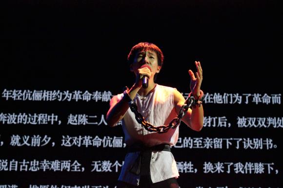 比赛现场,跨境电商与物流学院学生的诵读或以情动人、或以声引人,配合精彩的情景表演,通过诵读《给狱中妻子的信——邓中夏》《就义前的嘱托》《伉俪情深》《不忘初心,牢记使命》等再现了中华儿女的铮铮铁骨和强烈的爱国主义精神,展现了革命战士为革命的胜利和人民的解放事业而不懈奋斗的豪情壮志,参赛人员激昂的神采、动情的朗诵为大家呈现了一场精彩绝伦视听盛宴,赢得了在场人员的阵阵掌声。