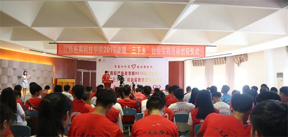 出征仪式上,校长助理干甜为2019年大学生暑期“三下乡”社会实践队伍授旗。建筑工程学院团总支书记刘奎进行了发言。他表示,将加强安全教育管理,希望同学们通过此次活动能够锻炼自己,能够在实践中进取,在实践过程中注意安全,突出重点,勇于实践,不断创新。随后,跨境电商与物流学院2017电子商务三班的汪不凡作为实践队员代表在仪式上发言。
