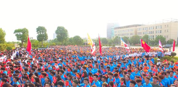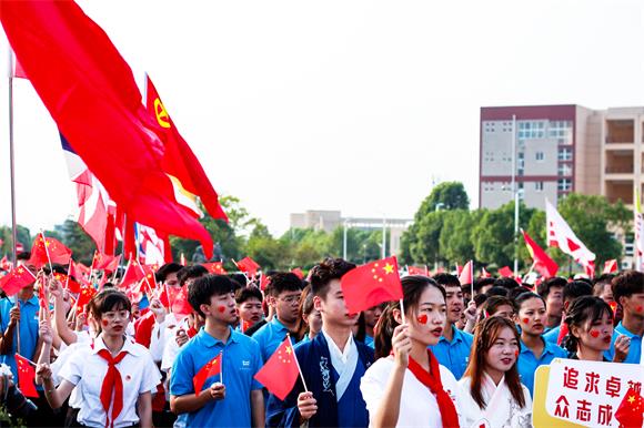接下来,全体新生向祖国告白。“新思想,我们学深悟透;新时代,我们重任在肩;新征程,我们昂扬奋进;新使命,我们勇于担当……”这是应科学子对祖国的告白誓言。