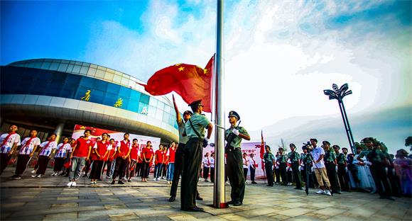 本网讯(记者团记者/梁玉凤、刘琦丽 摄影/黄愈)9月9日,学校在音乐厅门口举行“青春告白祖国”主题升旗仪式。2019级全体新生参加升旗仪式。